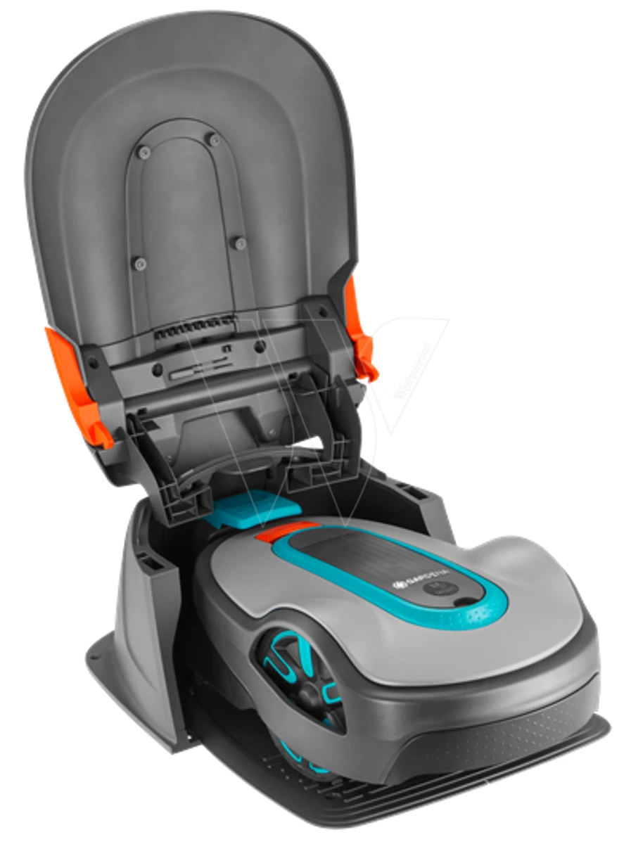 De robuuste kunststof garage biedt bescherming tegen zowel zon als regen voor de robotmaaier en het laadstation. Het inklapbare dak biedt gemakkelijke toegang tot het bedieningspaneel en de robotmaaierinstellingen kunnen eenvoudig worden aangepast.